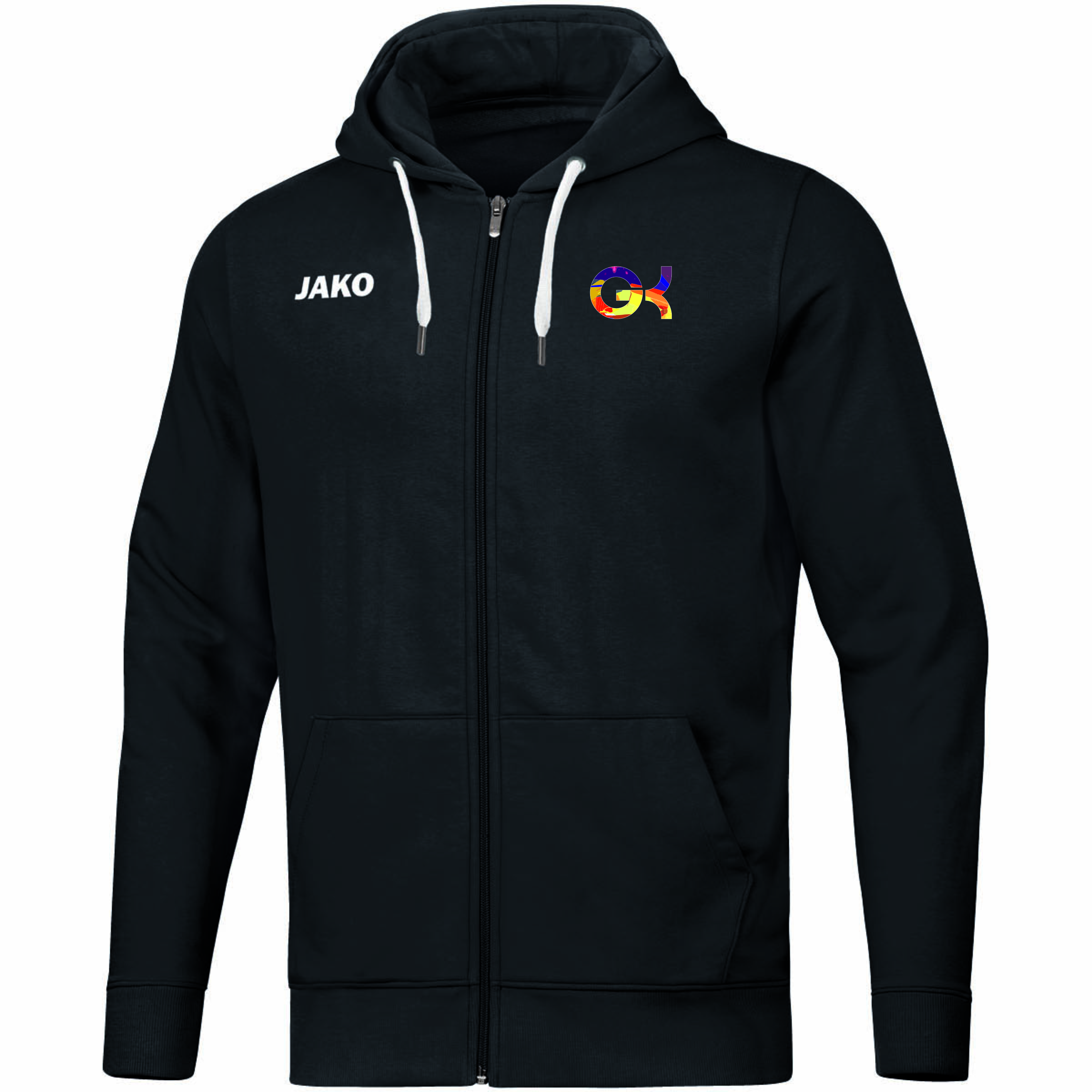 Kapuzenjacke mit GYM-Ki Logo farbig.