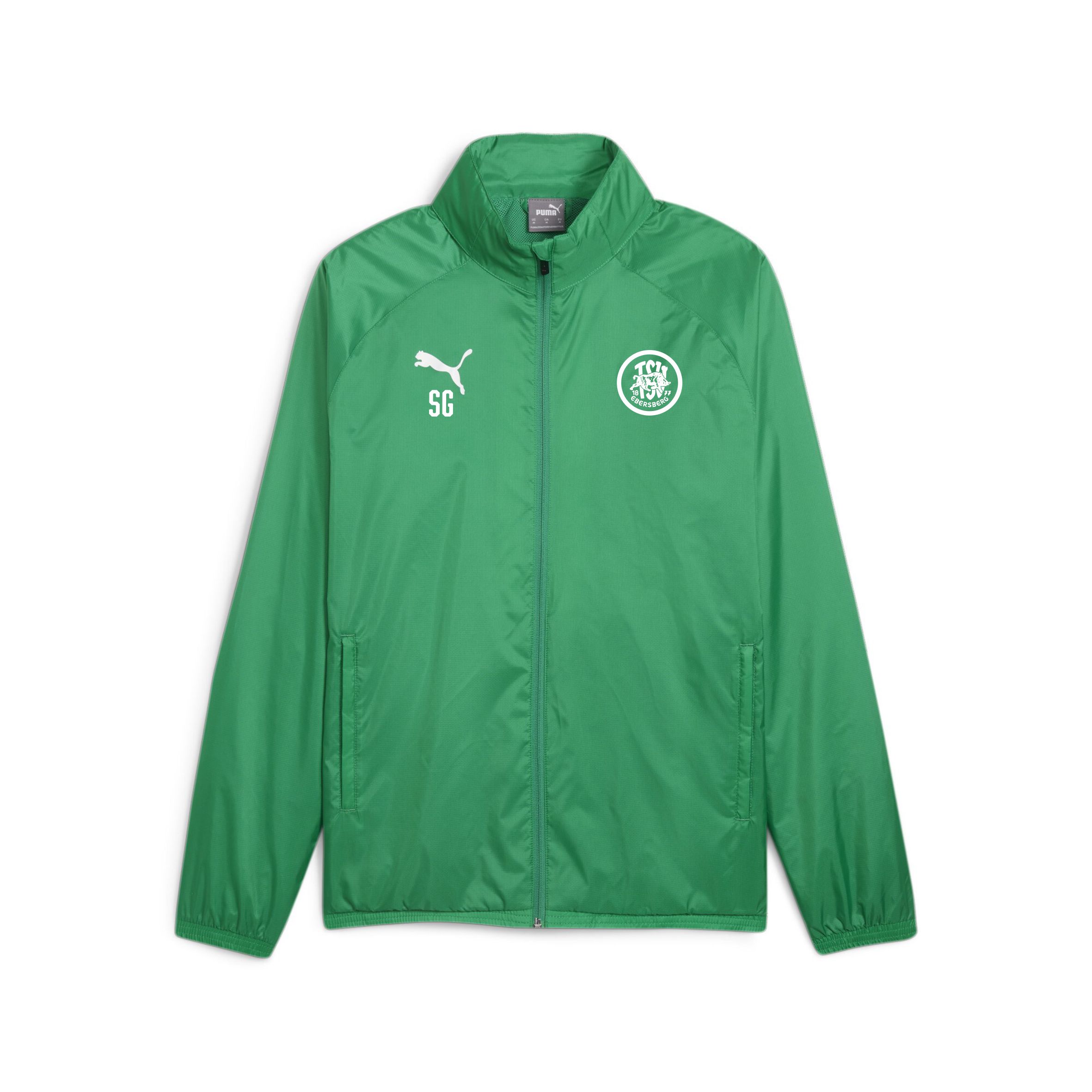 Polyesterjacke inklusive Wappen einfarbig und Vereinsname. Auf Wunsch mit Initialen.